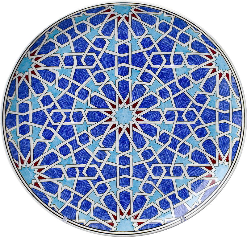 Bu eser Selçuklu yıldızı  deseninden  oluşturulmuş  mavi,turkuaz ve kırmızı renkleri ile oluşturulan  kompozisyon çalışmasıdır. Sır altı tekniği uygulanmıştır.