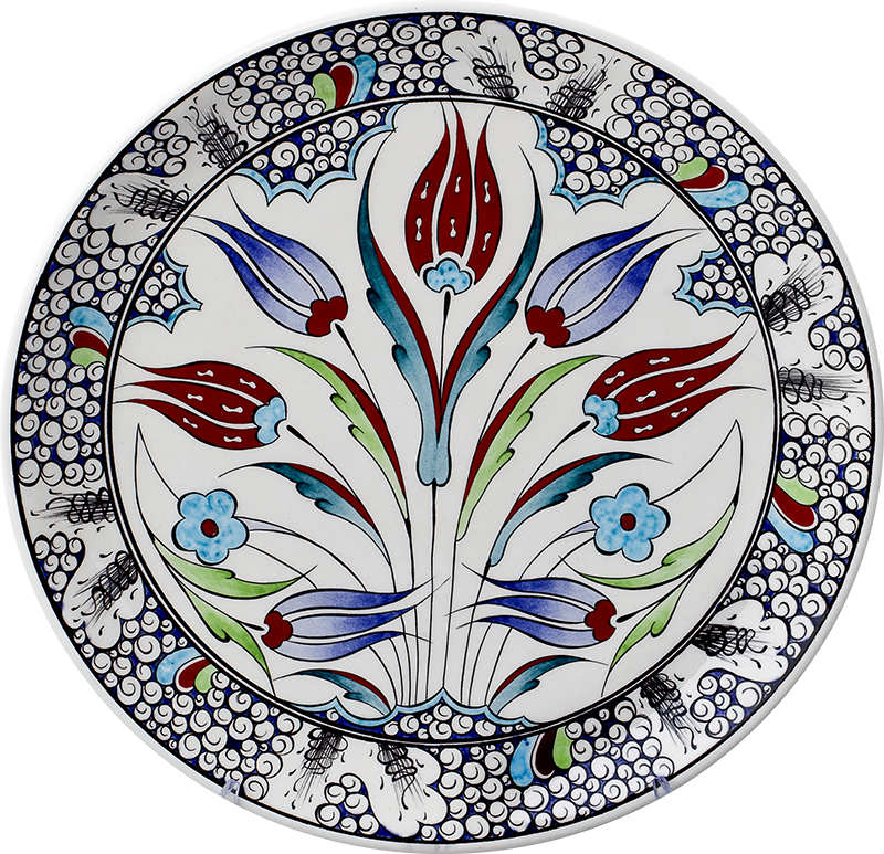 Tek olmanın sembolü olan lale motifi bu eserde konumlanmış ve etrafına küçük pençlerle grup oluşturulmuş mavi,turkuaz,kırmızı ve yeşil renklerle oluşmuş Klasik Osmanlı desenlerinden oluşturulmuş kompozisyon çalışmasıdır. Sır altı tekniği uygulanmıştır.