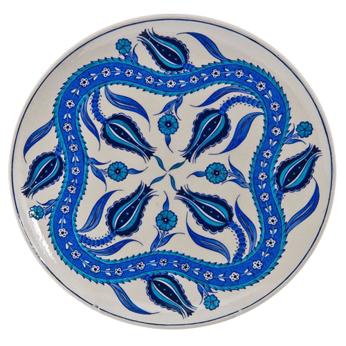 Tek olmanın sembolü olan lale motifi bu eserde konumlanmış ve etrafına küçük pençlerle grup oluşturulmuş Klasik Osmanlı desenlerinden   mavi beyaz  renklerle oluşturulmuş kompozisyon çalışmasıdır. sır altı tekniği uygulanmıştır.