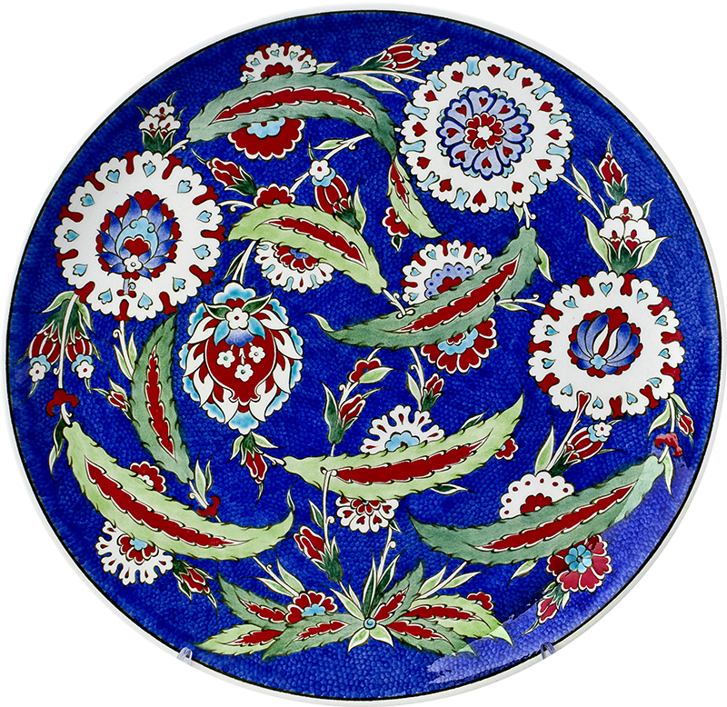 Asırlar öncesine uzanan köklü geçmişi ile “hatai”, doğada bulunan çiçeklerin dikine kesitinin üsluplaştırılmasıyla oluşturulan ve çoğunlukla simetrik biçimde çizilen bir motiftir. Bu eser hatayi,yaprak  desenlerinden oluşan özel  kompozisyon tasarımdır sır altı tekniği uygulanmıştır.