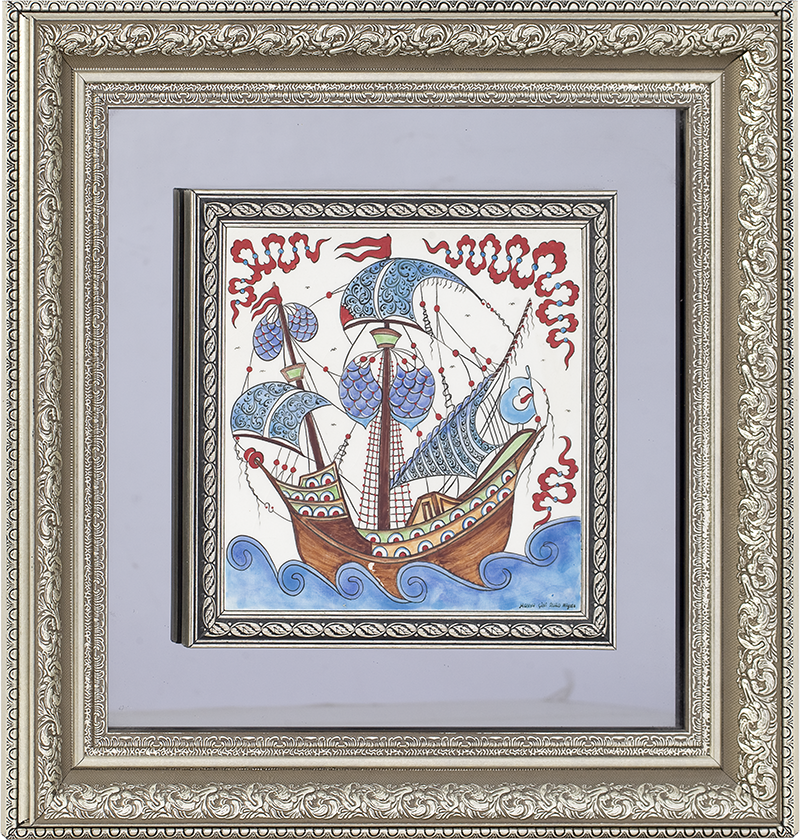 Klasik Osmanlı Kalyon Minyatür Tasarımlarından Esinlenerek Oluşturulmuş Çalışmadır. Sır Altı Uygulanmıştır.