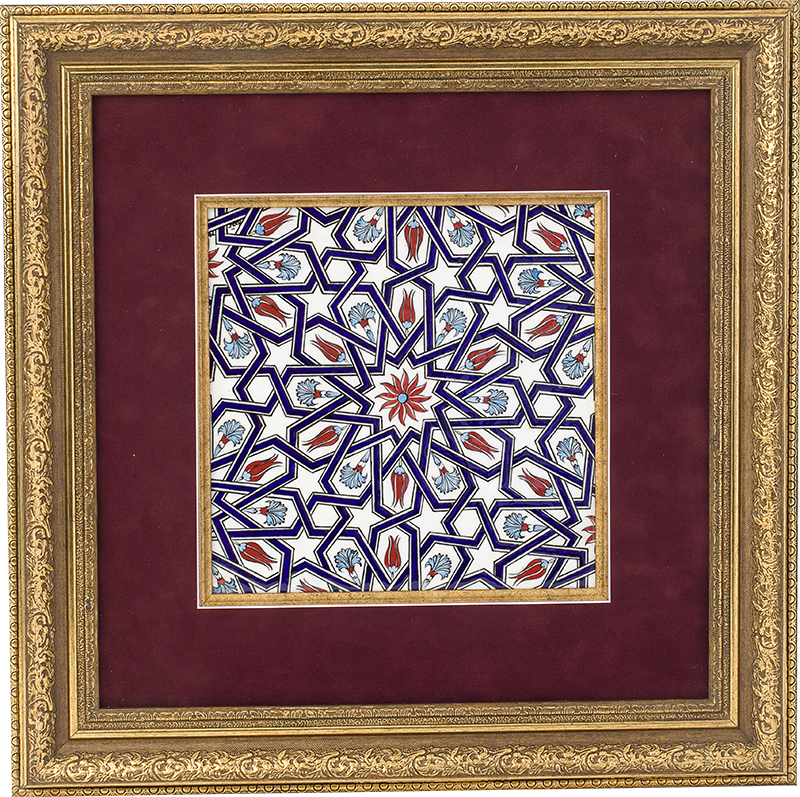 Bu eser Selçuklu yıldızı  deseninden  oluşturulmuş turkuaz ve kırmızı renkleri ile oluşturulan  kompozisyon çalışmasıdır. Sır altı tekniği uygulanmıştır.