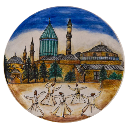 Mevlana Türbesi Ve Semazen Desenleri İle Yapılmış Özel Tasarım Kompozisyon Çalışmasıdır Sır Altı Tekniği Uygulanmıştır.