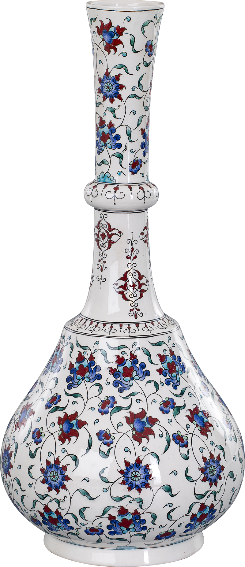 Bu eser hatayi ve rumi desenlerinden oluşan özel  kompozisyon tasarımdır sır altı tekniği uygulanmıştır.