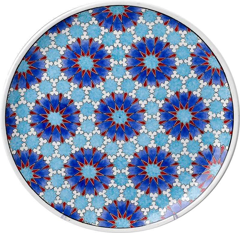 Bu eser Selçuklu yıldızı  deseninden  oluşturulmuş turkuaz ve kırmızı renkleri ile oluşturulan  kompozisyon çalışmasıdır. Sır altı tekniği uygulanmıştır.