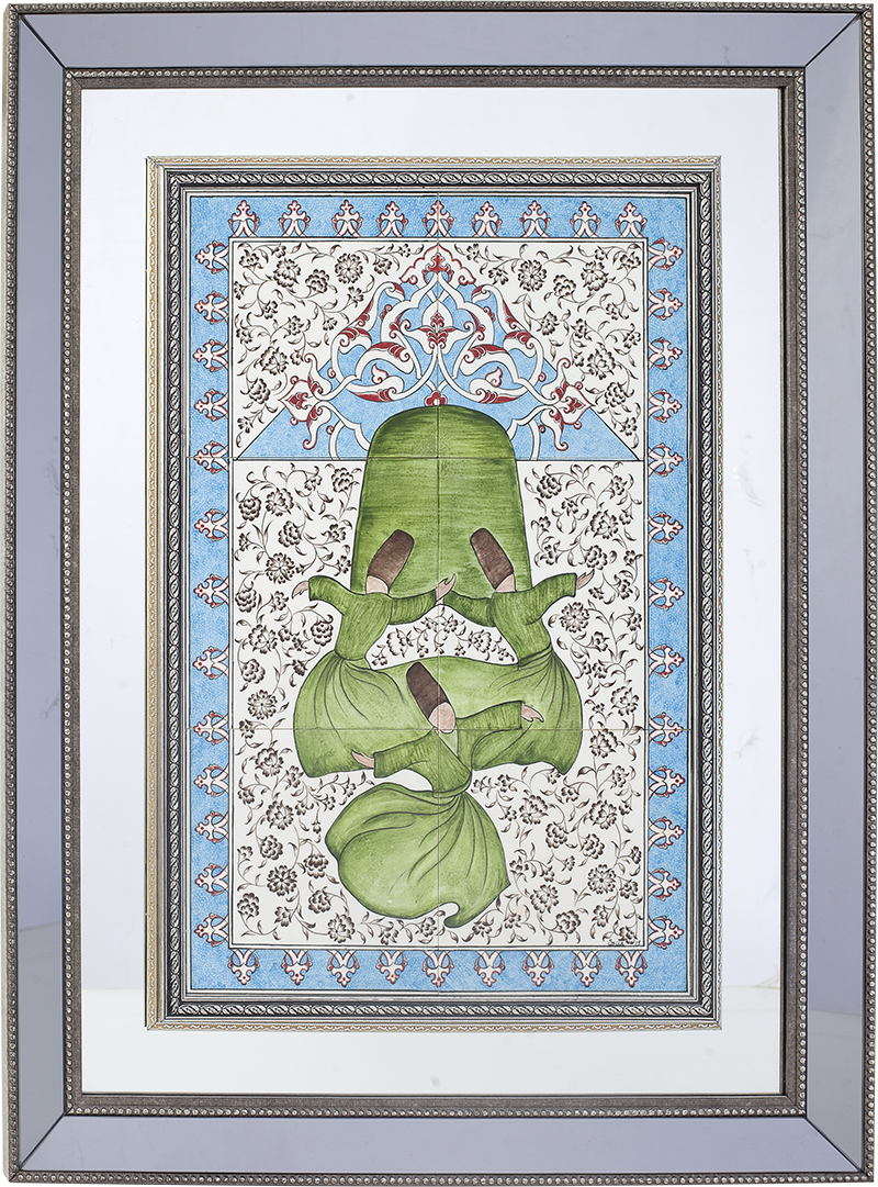 Sema Eden Dervişlerin Madde Aleminden Mana Alemine Seyr-i Süluk İle geçişini Anlatan Kompozisyon Kenar Süsü Haliç Figürlerinden Oluşturulmuş.Sır Altı Tekniği uygulanmıştır.