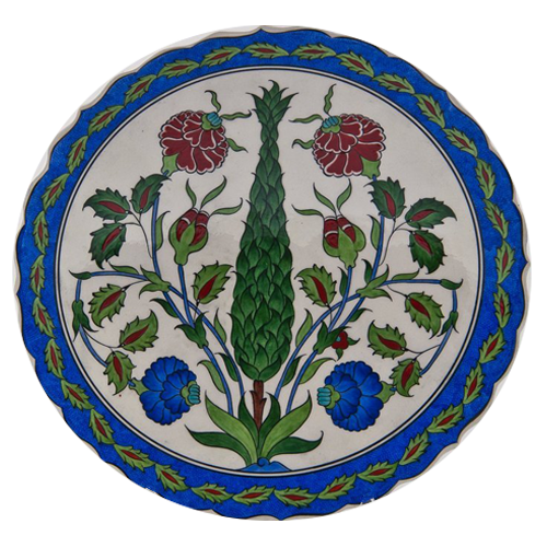 Klasik Osmanlı Desenlerinden gül ve servi ağacı deseni ile oluşturulmuş kompozisyon çalışmasıdır. sır altı tekniği uygulanmıştır.