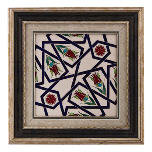 Bu eser Selçuklu yıldızı Ve Laleler İle  Oluşturulmuş Kompozisyon  Sır Altı Tekniği Uygulanmıştır.